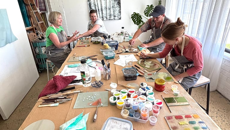 Discover the art of kiln-formed glass in our welcoming Fyshwick studio, guided by renowned Canberra artist Lisa Cahill. Whether you're new to glassmaking or looking to build on your skills, we offer a range of classes for all experience levels. Join us for a creative, hands-on experience, bring your friends or family and make something truly memorable.